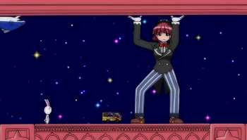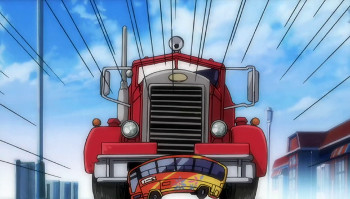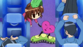 Himeko is desperately doing her best to not let the bus fall off the cliff. It seems like the balance is maintained with maho power and solar energy, but understanding it is impossible.