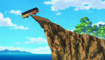 It's me, Miyako... Crisis... Today is Momotsuki Academy’s field day... A critical moment... We first-year students boarded on buses in groups of one class and set off... In an emergency... And then a lot happened to our Class C bus, and we ended up in an unnerving situation, where we’re currently about to drop off to a rock bottom... Dying... If the balance were to disrupt, we’d fall off immediately, so we can’t move nearly at all inside the bus... Nightmare... Aargh, just how did we end up like this!