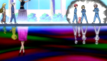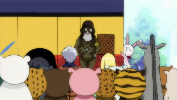 In the scene showing Class D’s mob characters, all the ordinary students that were there have been turned into animals. You might already expect just who’s pets these are.