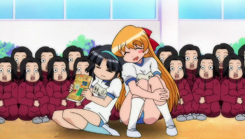 A comedian who became a huge hit during this anime’s broadcasting appears in the schoolyard as turned into a statue. Looking closer to this screen, the figures of other characters have also become different underground from aboveground counterparts. It’s suddenly a real mystery!?