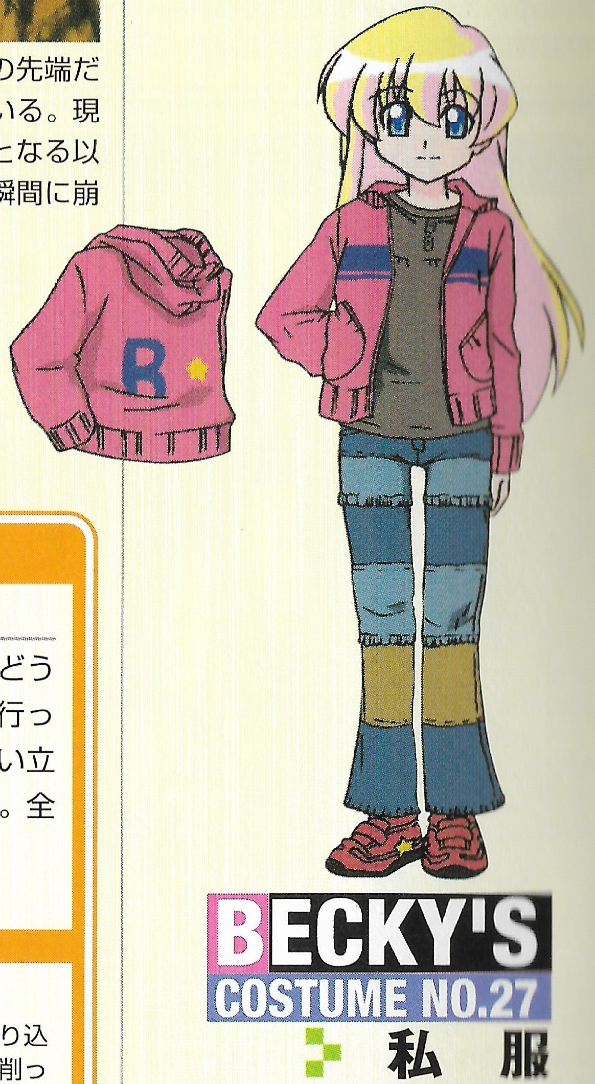 “As excursion was the theme, I thought up clothes where moving would be easy”. The three-dimensional cutting of bootcut jeans have also skilled stitching.