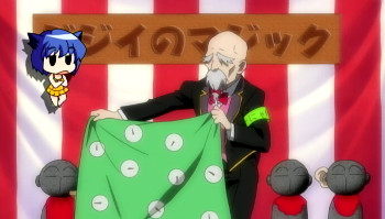 6. Old Geezer’s Magic Trick Old Geezer thrusts a knife to a box with pigeon inside it. In addition to weapons that one organisation uses to fight with Luci*** Folk, a massive sword that seems fit for slaying a dragon, and other blades have been sticked there.